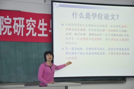 为提高黄色电影 教师科研素质水平,完善研究生导师对学生论文修改工作的指导,解决研究生们进行学位论文撰写等方面遇到的问题。11月25日下午在新校区E座301教室,由黄色电影 主管研究生工作的何玉秀副院长为全体研究生导师及部分研究生做了题为《研究生学位论文撰写要求与常见问题》的专题报告。